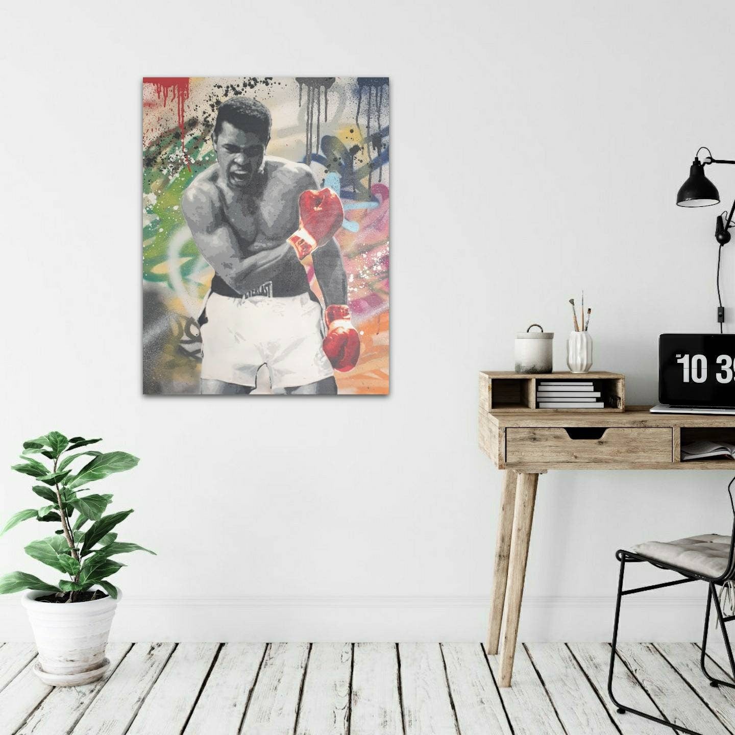 This original artwork is made using multiple layers of hand cut stencils and acrylic spraypaint. Its painted on a 60x80cm canvas and is ready to hang.